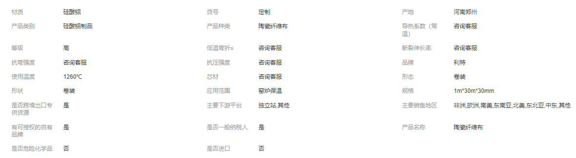 定制硅酸鋁陶瓷纖維布