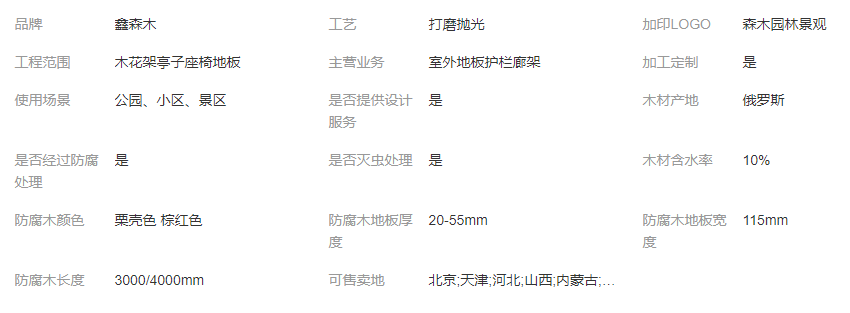 防腐木地板,是將木材經(jīng)過(guò)特殊防腐處理后,得到的具有防腐爛、防白蟻、防真菌的功效的地板。專(zhuān)門(mén)用于戶外環(huán)境的露天木地板,并且可以直接用于與水體、土壤接觸的環(huán)境中,是戶外木地板、園林景觀地板、戶外木平臺(tái)、露臺(tái)地板、戶外木棧道及其他室外防腐木涼棚的首選材料。